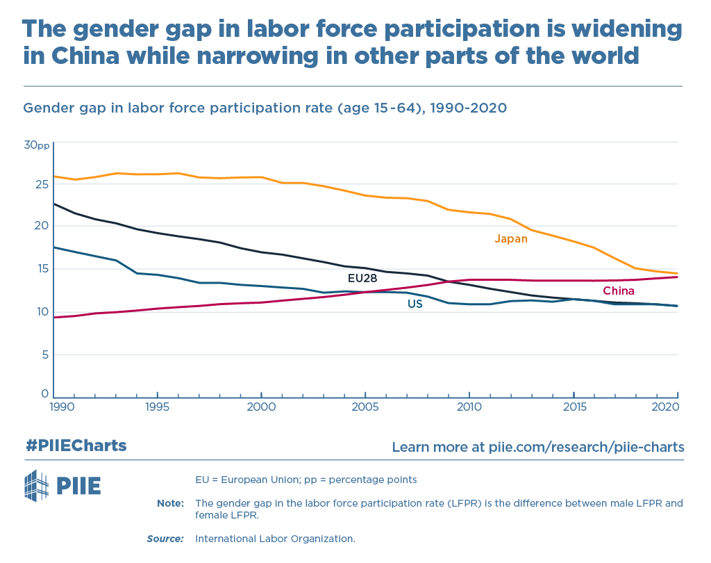 Zhang, Y. & Huang, T. (2020, June 17). The gender gap in labor force participation is widening in China while narrowing in other parts of the world [Image]. PIIE. Retrieved from https://www.piie.com/research/piie-charts/gender-gap-labor-force-participation-widening-china-while-narrowing-other-parts