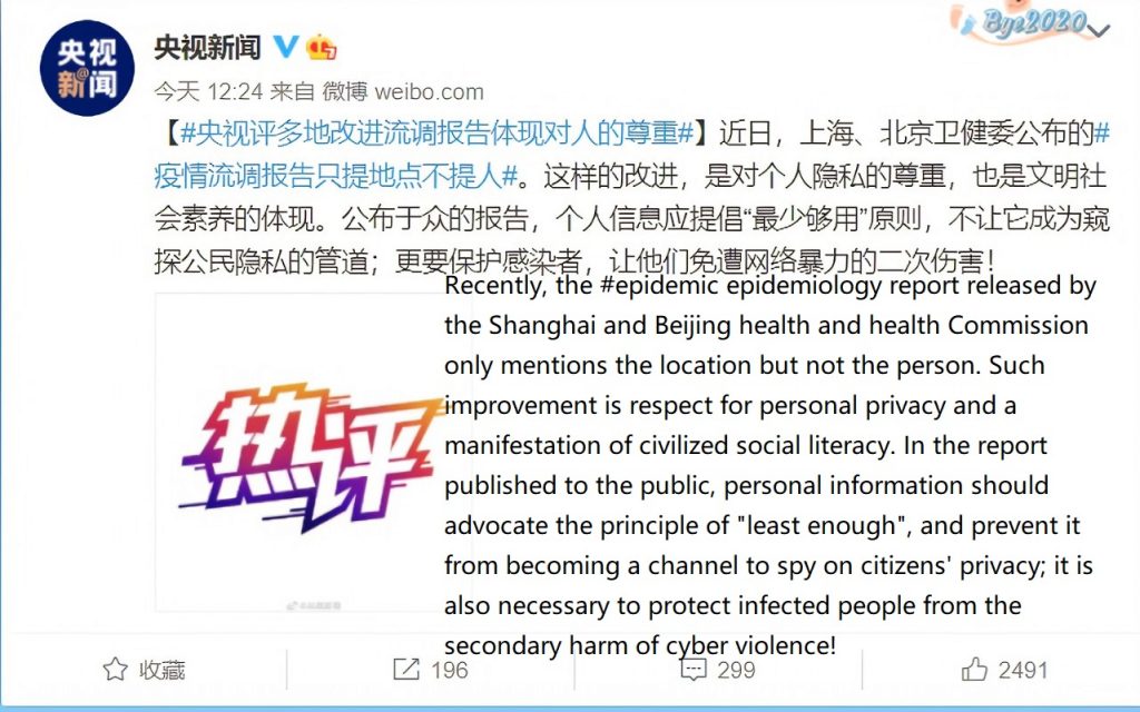 In this particular epidemic period, everyone could become a confirmed patient and become a victim of privacy breaches on digital platforms. Thus, protecting patient privacy in times of epidemics requires the involvement and collaboration between the government and the platform. It is necessary for us to make relatively mature and all-around internet governance to protect confirmed patient privacy.