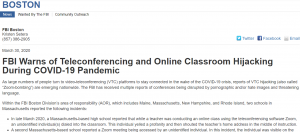 (FBI issues warning on ZOOM use)