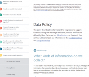Dvorak, C. (2022). What Data Does Facebook Collect? | Reviews.org. Retrieved April 2, 2022, from Reviews.org website: https://www.reviews.org/internet-service/what-data-does-facebook-collect/