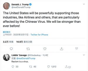 On March 17th, 2020, Donald J. Trump, who was still the president of the United States at the time, posted a tweet on his personal account, claiming that “COVID-19” as a “Chinese Virus”. The tweet came in the early months of covid19, when the majority of people were unaware of the disease and the U.S. president made racially aggressive leading comments that exacerbated Asian prejudice. This daring declaration first attracted the anger of China’s Chinese population.