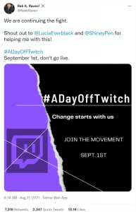 A fevered group of streamers decided not to go live for the day to protest the platform’s poor policing of hate speech. Eventually, it turned into A “Day off Twitch” campaign that set the Internet abuzz in the US.