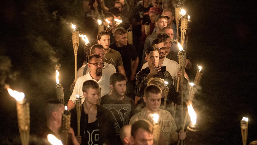 White supremacists march at the University of Virginia in 2017 (Photos by Evelyn Hockstein for The Washington Post)