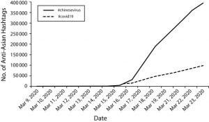 Hswen,Y., Xu, X., Hing, A, Hawkins, B. J, PhD, J S. Brownstein, S J. & Gee, G. C (2021), Association of “#covid19” Versus “#chinesevirus” With Anti-Asian Sentiments on Twitter: March 9–23, 2020, Am J Public Health. 111(5) P956–964. doi: 10.2105/AJPH.2021.306154.
