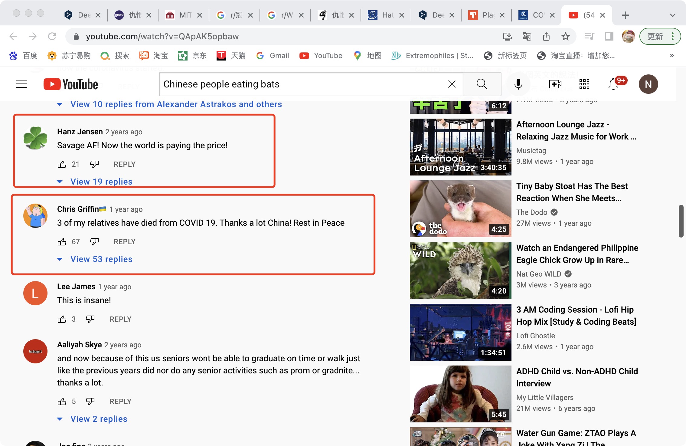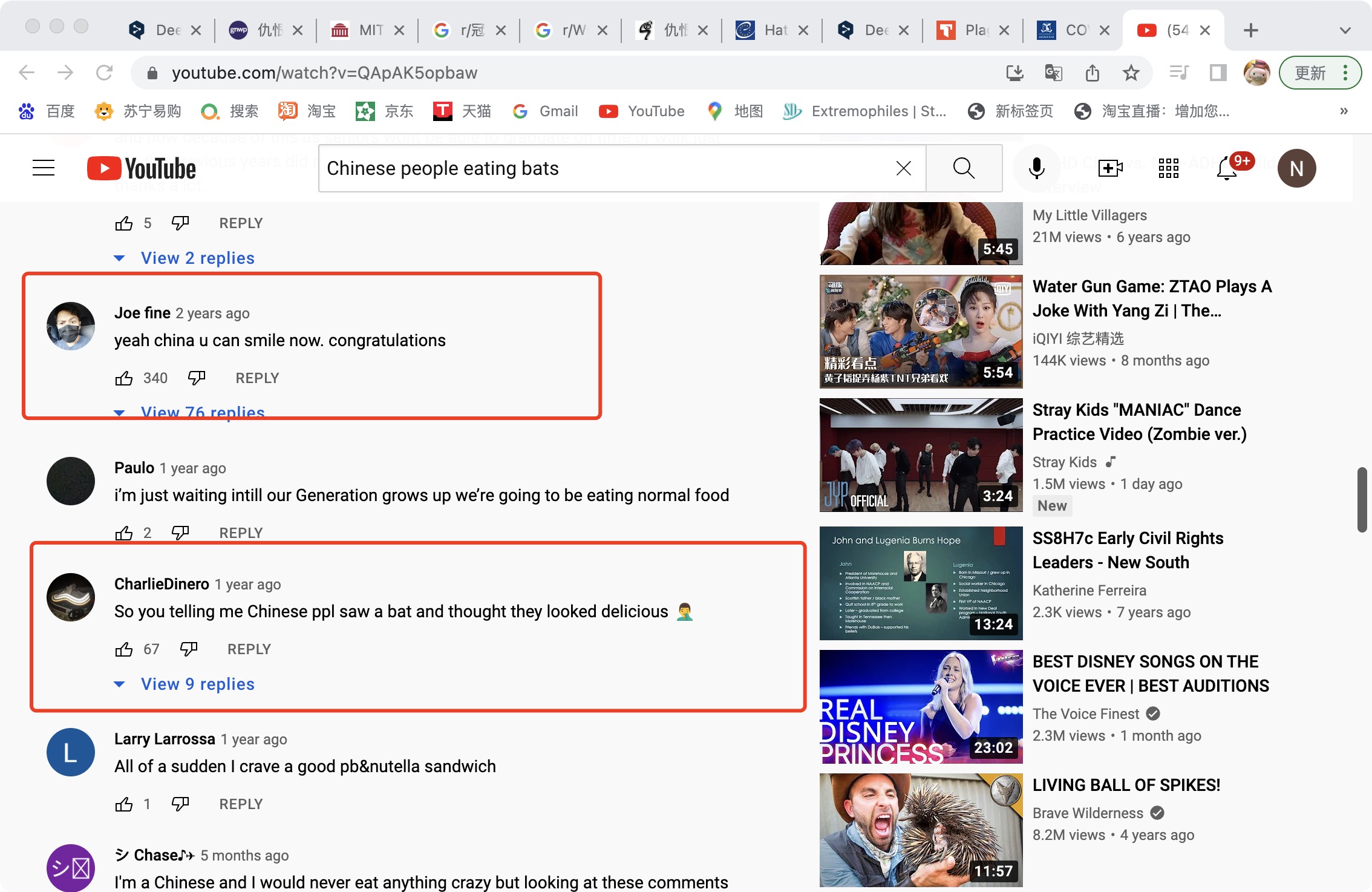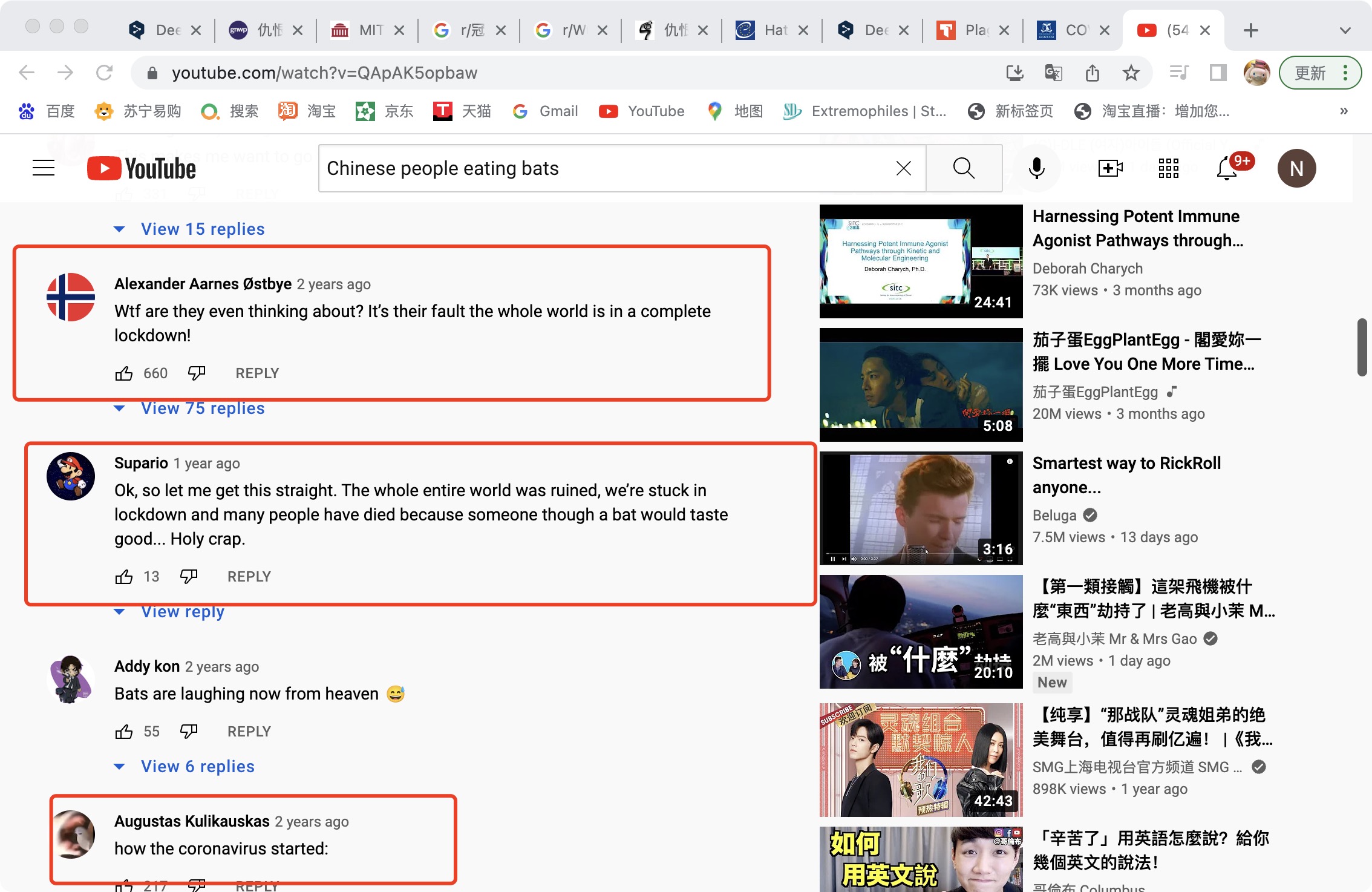 Besides, the networked nature of social media platforms allows hate speech to flourish in a decontextualized way across platforms (Matamoros-Fernández 2017, as cited in Nakamura, 2014). The decontextualized nature of hate speech is mainly responsible for users ignoring social context and social responsibility when posting their comments, focusing all their thinking on the events. This drives them to mask prejudice with humour and infinitely amplify racial slurs (Matamoros-Fernández 2017). As shown in Figure 6, “So you telling me Chinese ppl saw a bat and thought they looked delicious.” I cannot wait for the next video, Bats eating Chinese” (shown in Figure 3). Publics ignore the fact that the world is experiencing an unprecedented crisis and shirk their responsibility to maintain social and national stability in its midst, with users focusing on extracting critical information from the video, satirizing it, or making fun of it to attract more attention. However, in conjunction with YouTube’s sorting algorithm, the number of likes as an indicator influences where comments are displayed (Matamoros-Fernández 2017). In such a case, humorous comments will receive many likes and be topped in the YouTube comments section, and racist discourse is given relevance and legitimacy. It will have a more permanent presence on the Internet, with more significant negative consequences.