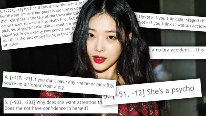 Most of Sulli’s targeted audiences are Asians, especially East Asian countries such as Korea and China who love K-pop very much. These countries are influenced by Confucian culture and are relatively conservative in thinking. Influenced by Western culture, they can actually accept revealing, sexually suggestive pictures and photos. But that doesn’t happen to an Asian, young, once-lovable, once-innocent, female idol. This is not for Sulli alone, but for young Asian women as a whole. Asians seem to be very receptive to open-minded foreigners, but they cannot accept such Asians. This is a very contradictory point, and perhaps it can also be called racism. Although not greatly affected in terms of interests, judging from Sulli’s Instagram comments, and even from Chinese social media, Asian netizens seem to have a double standard for Asians and Westerners which is based on prejudiced viewpoint and stereotype. Someone encouraged Sulli to say, ‘you shouldn’t have been born in Korea, you’re a cool Hollywood girl.’